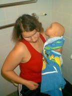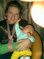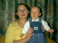 Здесь я уже побольше. Могу улыбаться, могу порадовать маму агушкой. Да и выгляжу вроде бы получше. Народу понаехало на меня полюбоваться - только успевай каждому говорить "Хеллоу"! Кроме меня, вы можете увидеть на этих фото маму, а еще дедушку Васю и дядюшку Пашу.